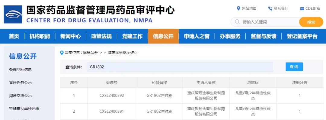 天勤生物助力智翔金泰GR1802注射液兒童/青少年特應性皮炎適應癥獲批臨床
