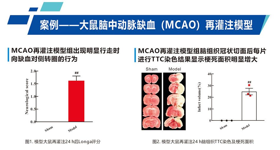• 大鼠腦中動脈缺血(MCAO)再灌注模型